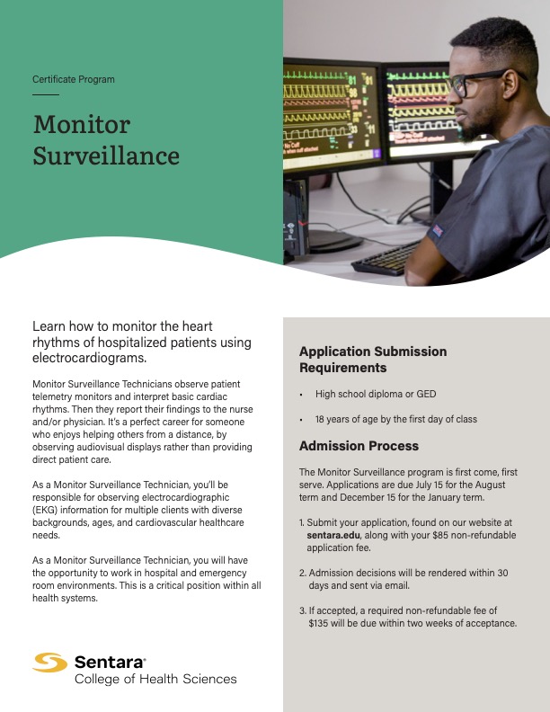 Sentara offers tuition assistance that can fully fund this program for Sentara employees. This means employees like you can join the Monitor Surveillance program at no cost to you.*